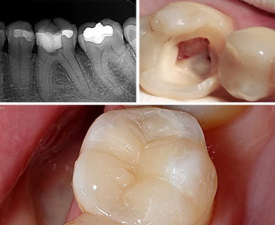 Tratamento do canal dentário, indicado para casos de dor intensa, infecções ou cárie profundas. O objetivo é preservar o dente natural e eliminar a infecção.